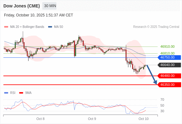 美国道琼斯指数期货 (Z5) 当日内: 短期关键阻力位在46750.00。