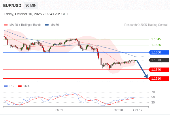 在 1.1600 之下,看跌,目标价位为 1.1540 ,然后为 1.1510 。