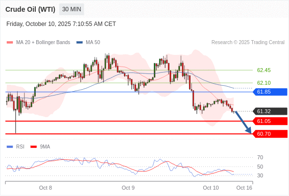 在 61.85 之下,看跌,目标价位为 61.05 ,然后为 60.70 。