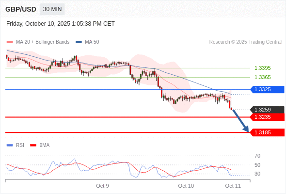 在 1.3325 之下,看跌,目标价位为 1.3235 ,然后为 1.3185 。