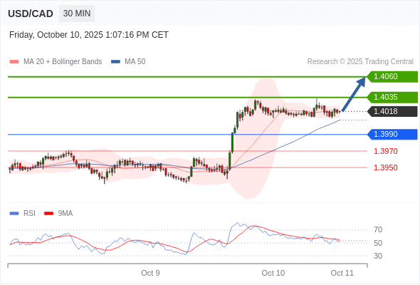 在 1.3990 之上,看涨,目标价位为 1.4035 ,然后为 1.4060 。