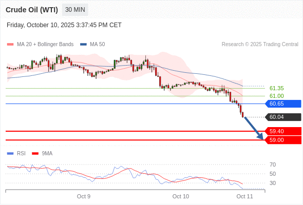 在 60.65 之下,看跌,目标价位为 59.40 ,然后为 59.00 。