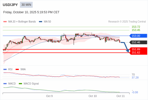 美元/日元 当日内 : 看跌,在 153.00 之下。