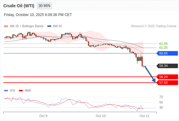 在 60.65 之下,看跌,目标价位为 58.20 ,然后为 57.60 。