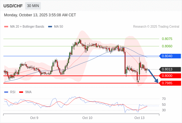 在 0.8040 之下,看跌,目标价位为 0.8000 ,然后为 0.7985 。