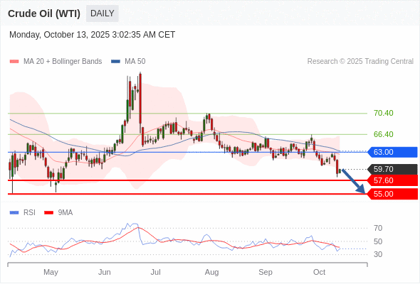 交易策略: 在 63.00 之下,看跌,目标价位为 57.60 ,然后为 55.00 。
