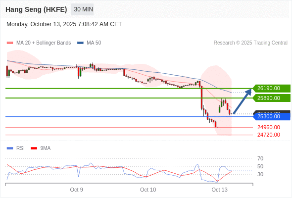 交易策略: 在 25300.00 之上,看涨,目标价位为 25890.00 ,然后为 26190.00 。