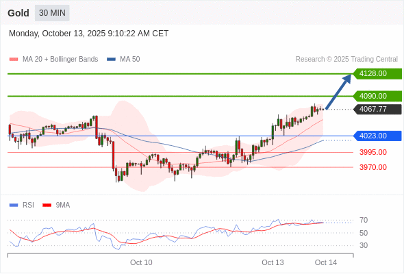 在 4023.00 之上,看涨,目标价位为 4090.00 ,然后为 4128.00 。