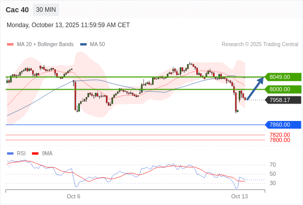 在 7860.00 之上,看涨,目标价位为 8000.00 ,然后为 8049.00 。