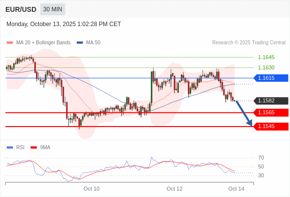 交易策略: 在 1.1615 之下,看跌,目标价位为 1.1565 ,然后为 1.1545 。