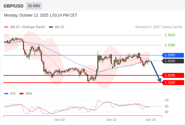 在 1.3355 之下,看跌,目标价位为 1.3285 ,然后为 1.3260 。