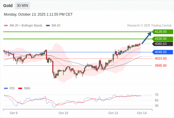 在 4048.00 之上,看涨,目标价位为 4100.00 ,然后为 4128.00 。