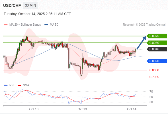 在 0.8020 之上,看涨,目标价位为 0.8060 ,然后为 0.8075 。