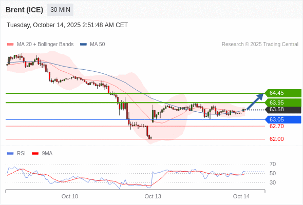 在 63.05 之上,看涨,目标价位为 63.95 ,然后为 64.45 。