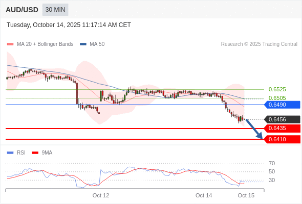 在 0.6490 之下,看跌,目标价位为 0.6435 ,然后为 0.6410 。