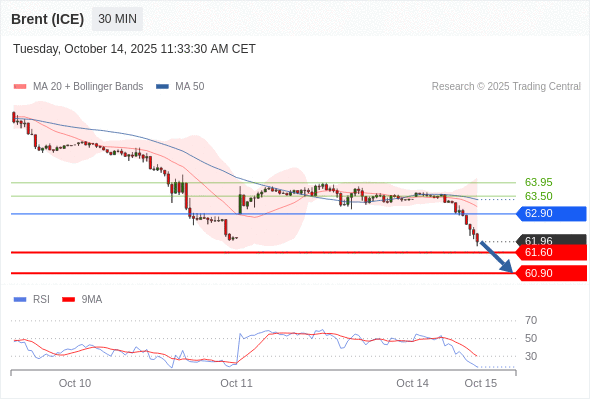 在 62.90 之下,看跌,目标价位为 61.60 ,然后为 60.90 。