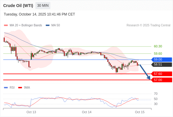 交易策略: 在 59.00 之下,看跌,目标价位为 57.60 ,然后为 57.00 。