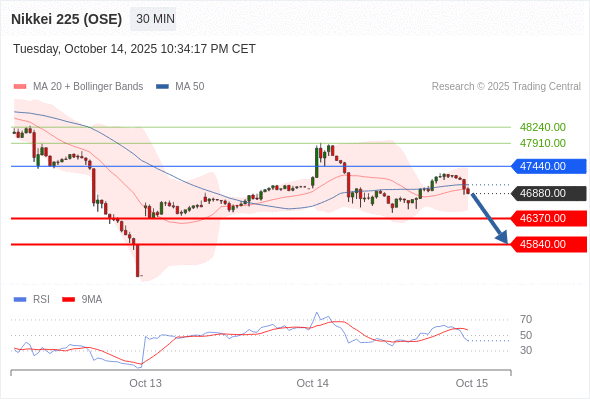 在 47440.00 之下,看跌,目标价位为 46370.00 ,然后为 45840.00 。