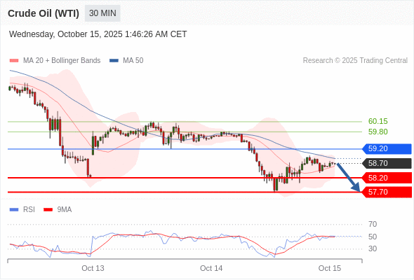 在 59.20 之下,看跌,目标价位为 58.20 ,然后为 57.70 。