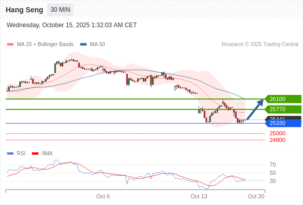 在 25330 之上,看涨,目标价位为 25770 ,然后为 26100 。