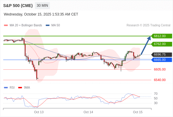 在 6665.00 之上,看涨,目标价位为 6762.00 ,然后为 6812.00 。