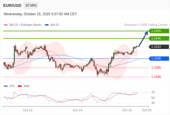 在 1.1590 之上,看涨,目标价位为 1.1645 ,然后为 1.1665 。