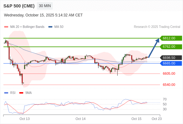 在 6665.00 之上,看涨,目标价位为 6762.00 ,然后为 6812.00 。