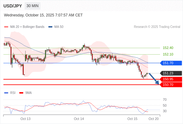 在 151.70 之下,看跌,目标价位为 150.95 ,然后为 150.70 。