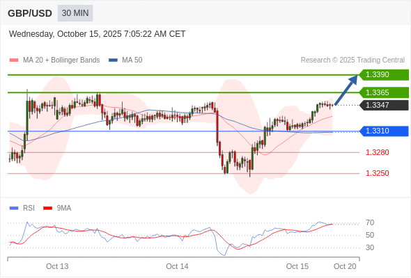 在 1.3310 之上,看涨,目标价位为 1.3365 ,然后为 1.3390 。
