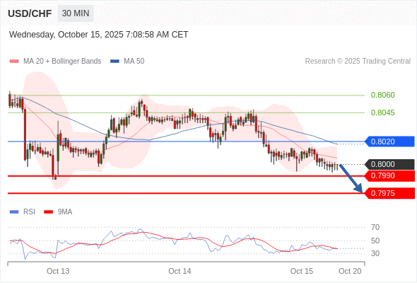 在 0.8020 之下,看跌,目标价位为 0.7990 ,然后为 0.7975 。
