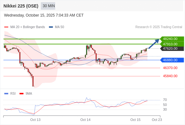 在 46880.00 之上,看涨,目标价位为 47910.00 ,然后为 48240.00 。