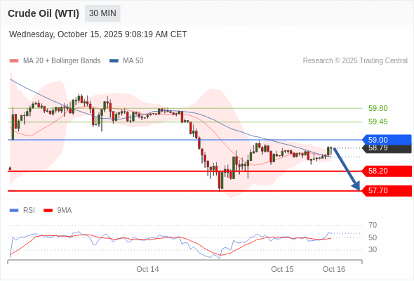 在 59.00 之下,看跌,目标价位为 58.20 ,然后为 57.70 。