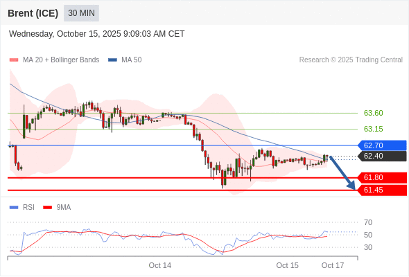 布伦特原油 (ICE) (Z5) 当日内: 短期关键阻力位在62.70。