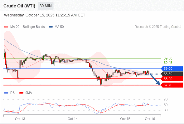 交易策略: 在 59.00 之下,看跌,目标价位为 58.20 ,然后为 57.70 。