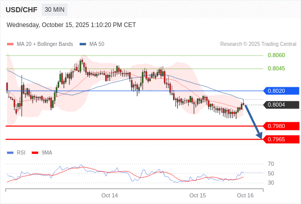 在 0.8020 之下,看跌,目标价位为 0.7980 ,然后为 0.7965 。