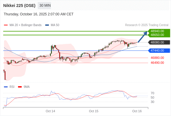 在 47440.00 之上,看涨,目标价位为 48650.00 ,然后为 48940.00 。