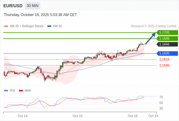 在 1.1635 之上,看涨,目标价位为 1.1685 ,然后为 1.1705 。