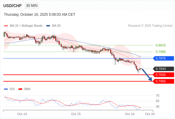 在 0.7975 之下,看跌,目标价位为 0.7925 ,然后为 0.7905 。