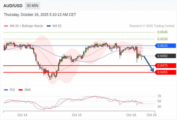 在 0.6515 之下,看跌,目标价位为 0.6470 ,然后为 0.6455 。