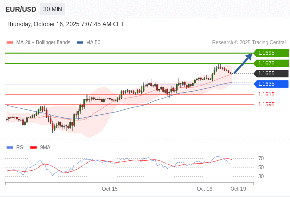 在 1.1635 之上,看涨,目标价位为 1.1675 ,然后为 1.1695 。