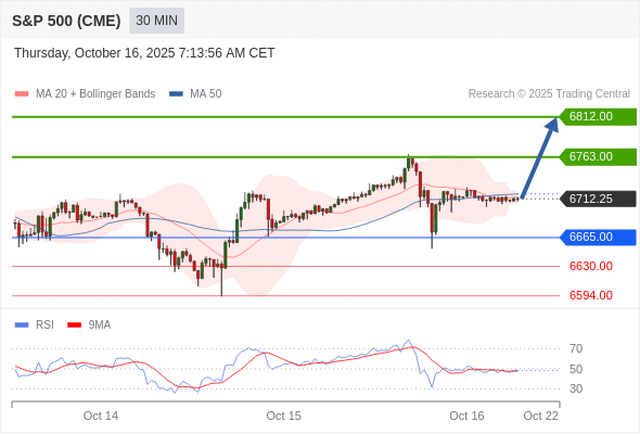 在 6665.00 之上,看涨,目标价位为 6763.00 ,然后为 6812.00 。