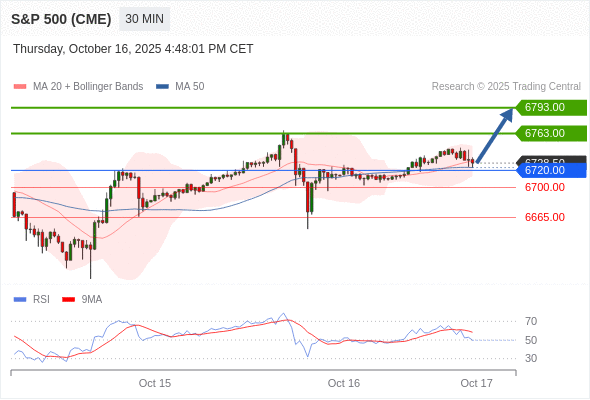 在 6720.00 之上,看涨,目标价位为 6763.00 ,然后为 6793.00 。