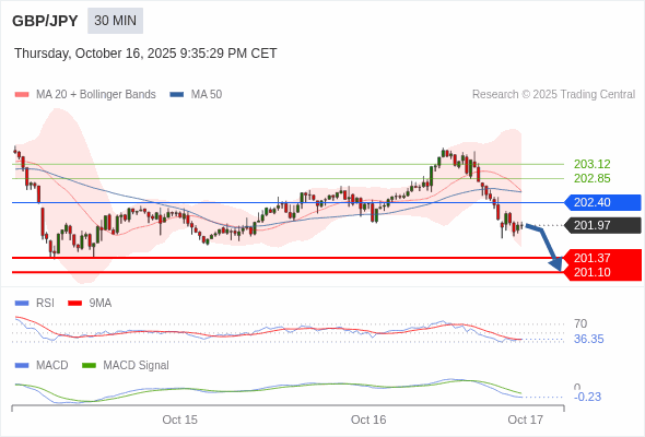 英镑/日元 当日内 : 看跌,在 202.40 之下。