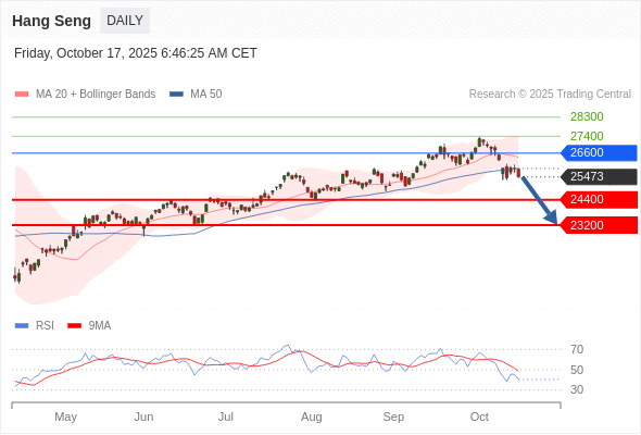 恒生指数 短线: 反转向下。
