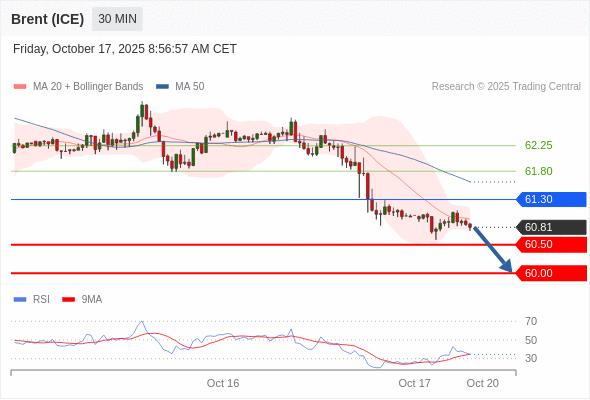 在 61.30 之下,看跌,目标价位为 60.50 ,然后为 60.00 。