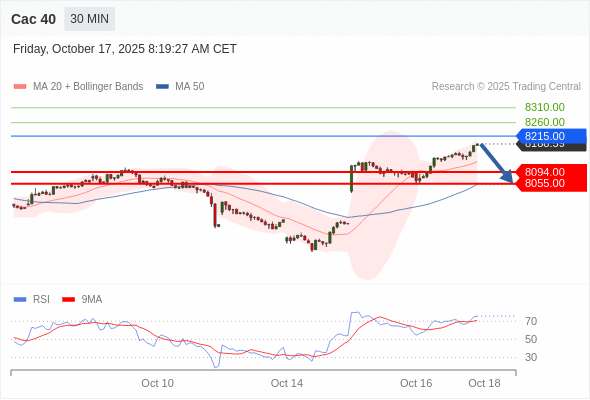 交易策略: 在 8215.00 之下,看跌,目标价位为 8094.00 ,然后为 8055.00 。