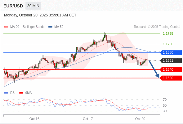 交易策略: 在 1.1680 之下,看跌,目标价位为 1.1640 ,然后为 1.1620 。