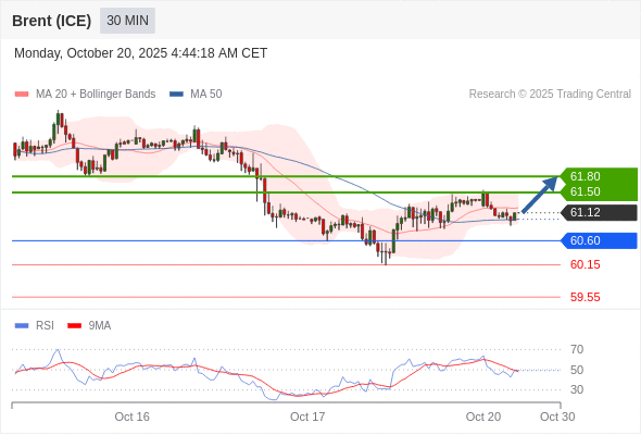 在 60.60 之上,看涨,目标价位为 61.50 ,然后为 61.80 。
