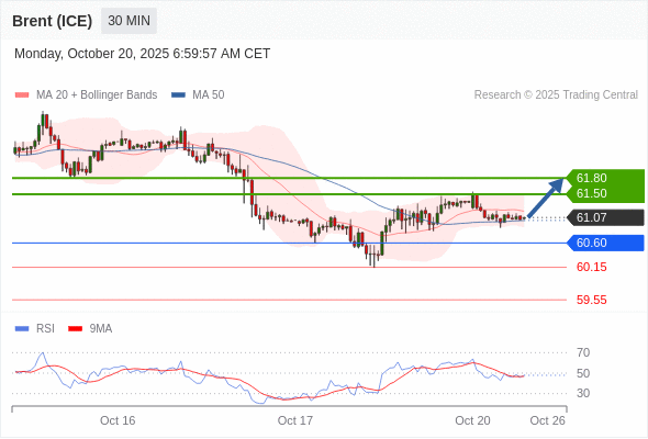 在 60.60 之上,看涨,目标价位为 61.50 ,然后为 61.80 。
