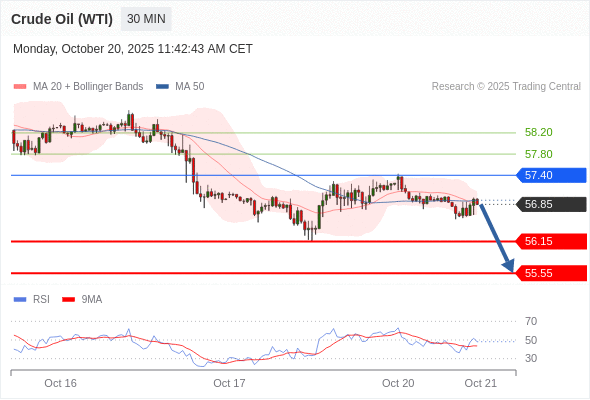 在 57.40 之下,看跌,目标价位为 56.15 ,然后为 55.55 。